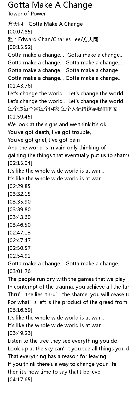 | [02:58.72] | Gotta make a change... Gotta make a change... |