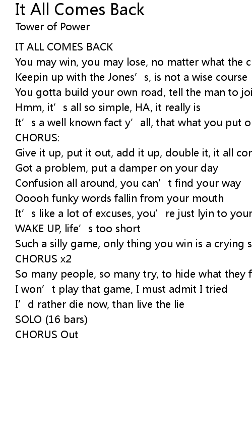 | IT ALL COMES BACK | |