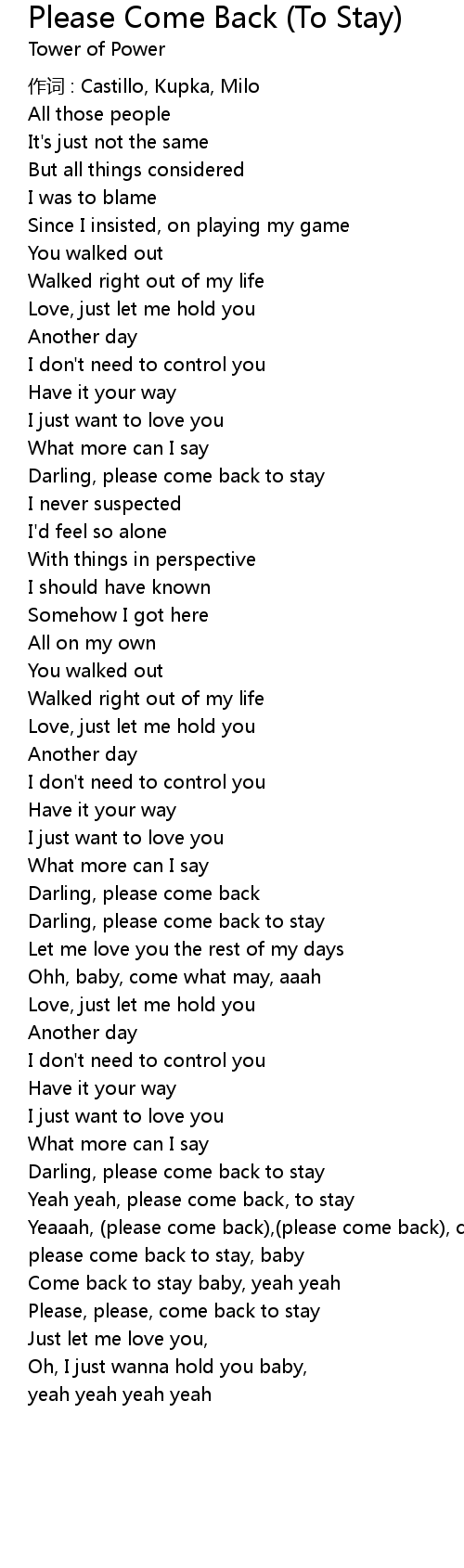 | please come back to stay, baby | |