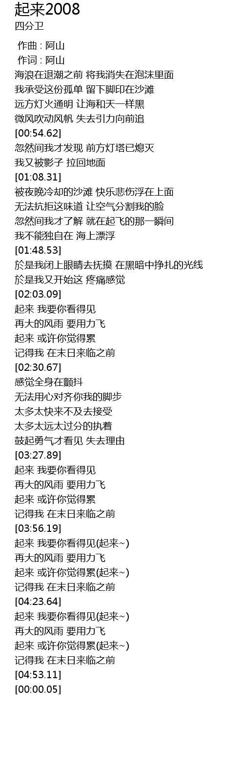 | [00:00.01] | 作词 : 阿山 |