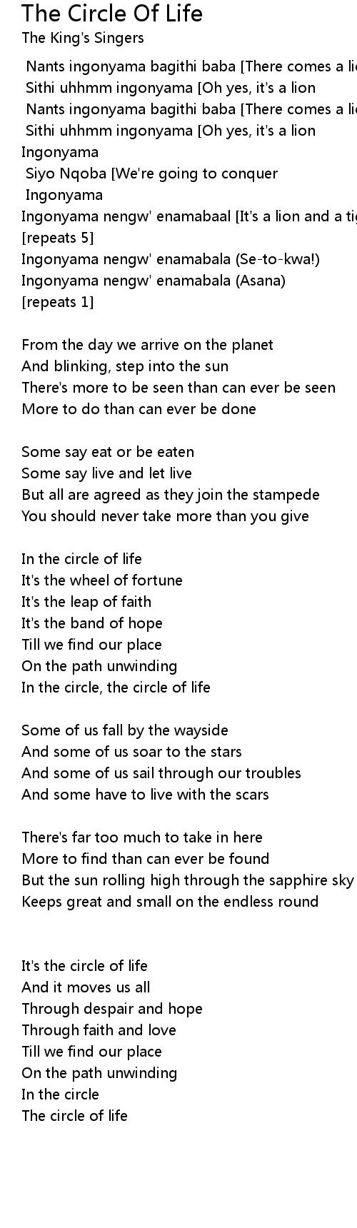 In the circle, the circle of life |