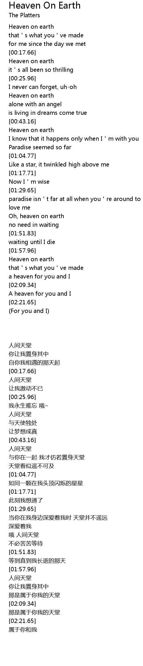 | [00:43.77] | Heaven on earth |