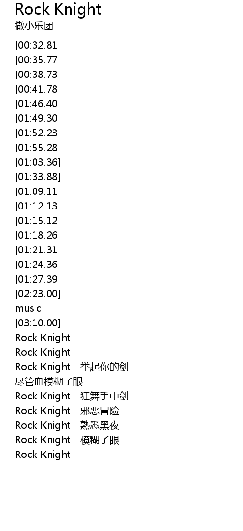 | [01:58.15][01:09.11] | Rock Knight 举起你的剑 |