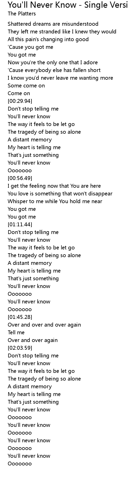 You'll never know |