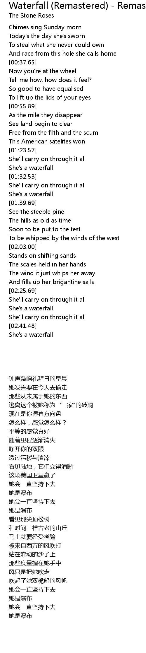 Waterfall (Remastered) - Remastered Lyrics