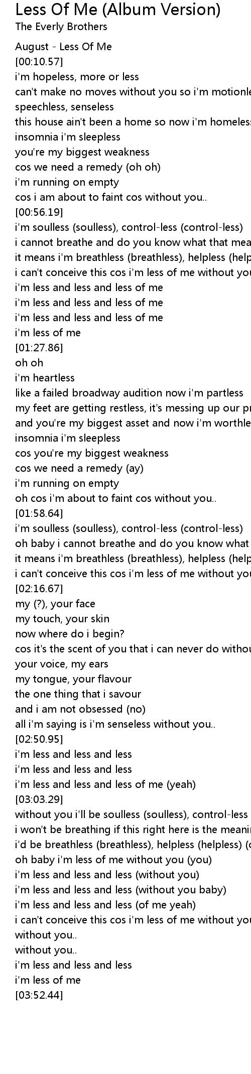 oh baby i'm less of me without you (you) |