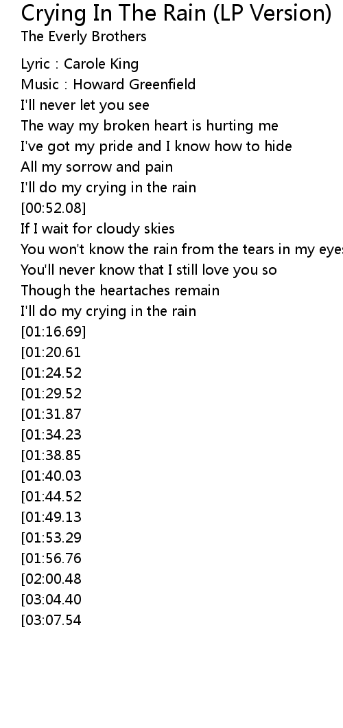 | [02:56.13][01:56.76] | I' ll do my crying in the rain |