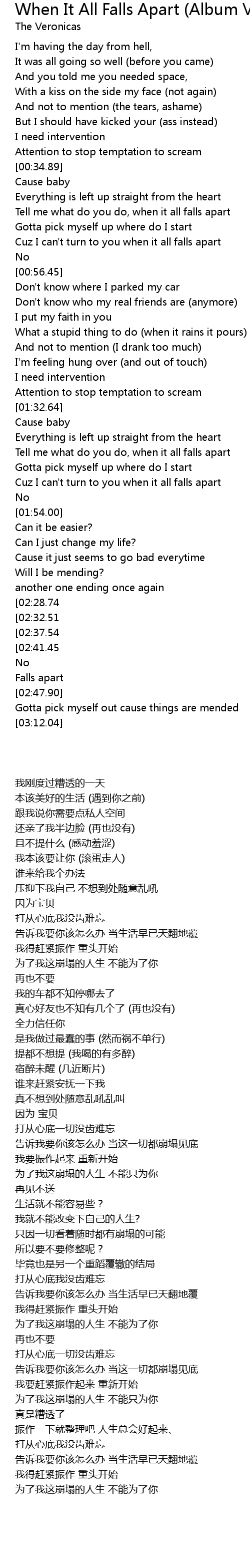 Tell me what do you do, when it all falls apart |