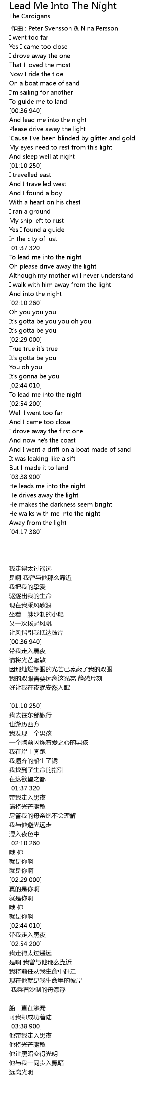 | [00:00.00] | zuo qu : Peter Svensson Nina Persson |
