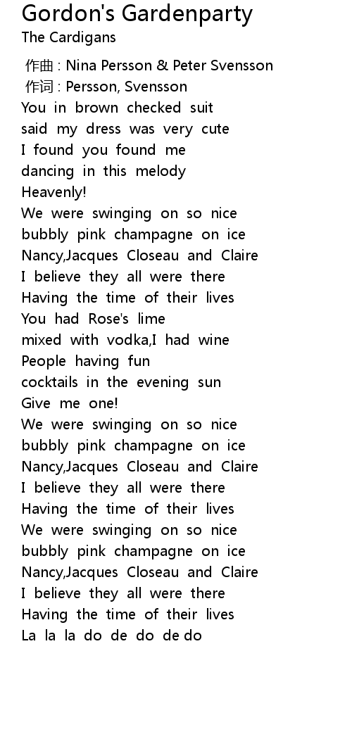 | Song | Gordon's Gardenparty |