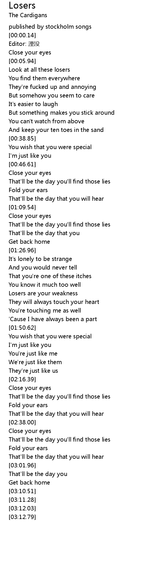 | [00:16.39] | Look at all these losers |