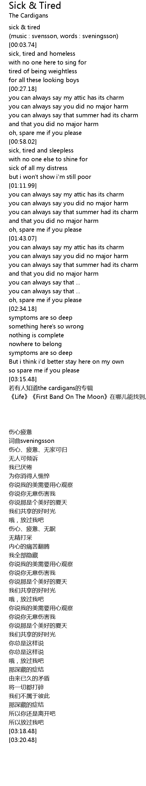 | [03:18.48] | ruò yǒu rén zhī dào the cardigans de zhuān jí |