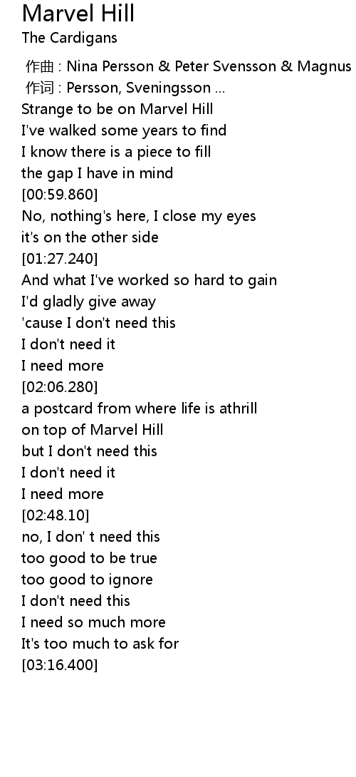 | [00:00.00] | 作曲 : Nina Persson & Peter Svensson & Magnus Sveningsson |