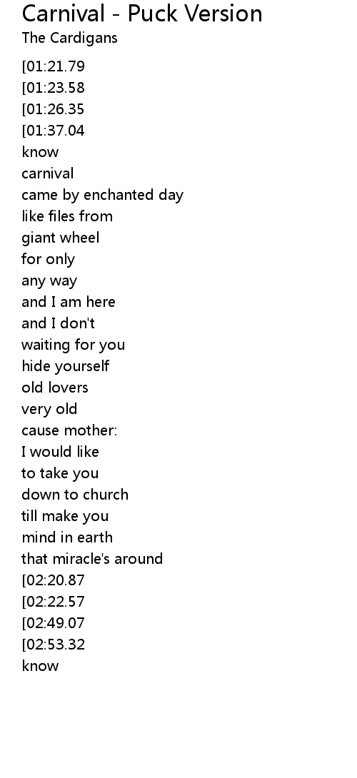 Carnival - Puck Version Lyrics
