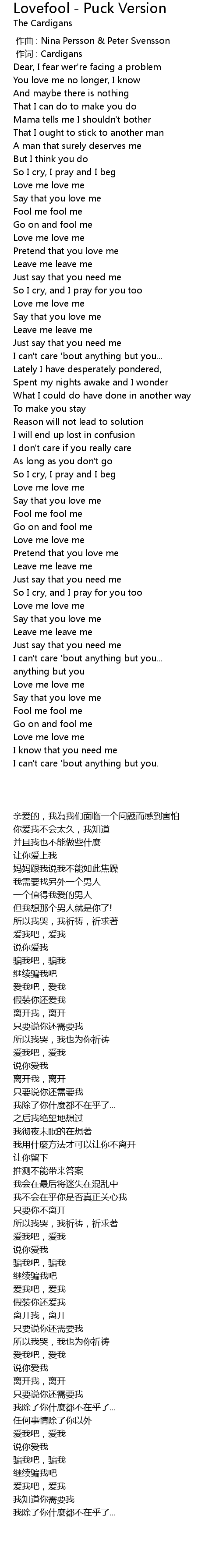 | [00:00.00] | zuo qu : Nina Persson Peter Svensson |