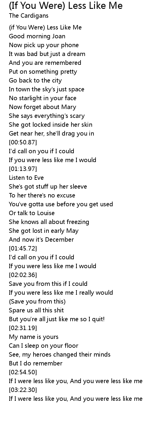 (if You Were) Less Like Me |