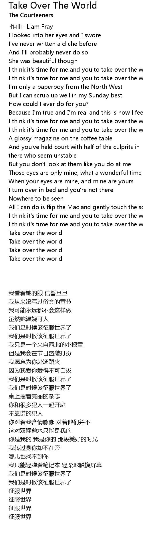 | [00:34.99] | I think it's time for me and you to take over the world |