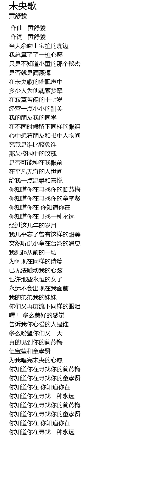| [00:01.00] | 作词 : 黄舒骏 |