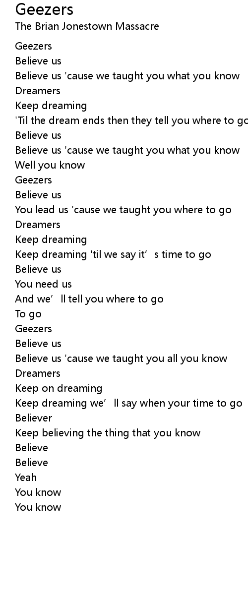 | Song | Geezers |