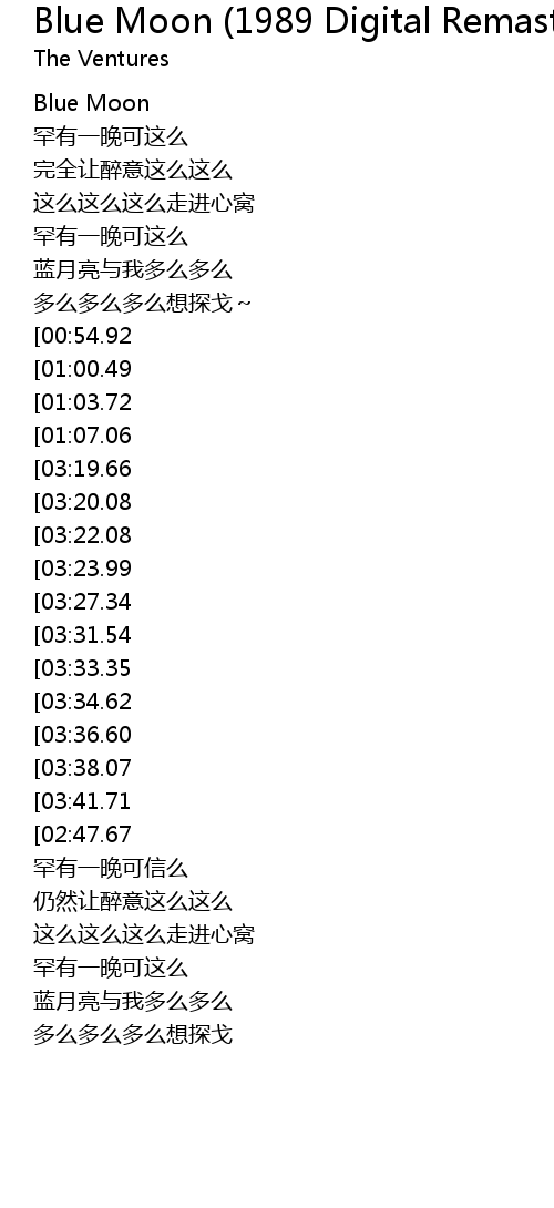 | [00:04.56] | Blue Moon |