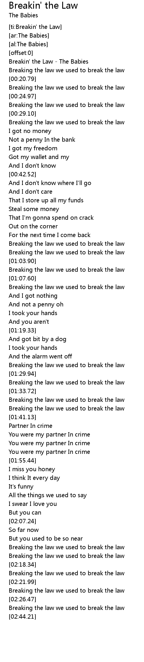 [ti:Breakin' the Law] |