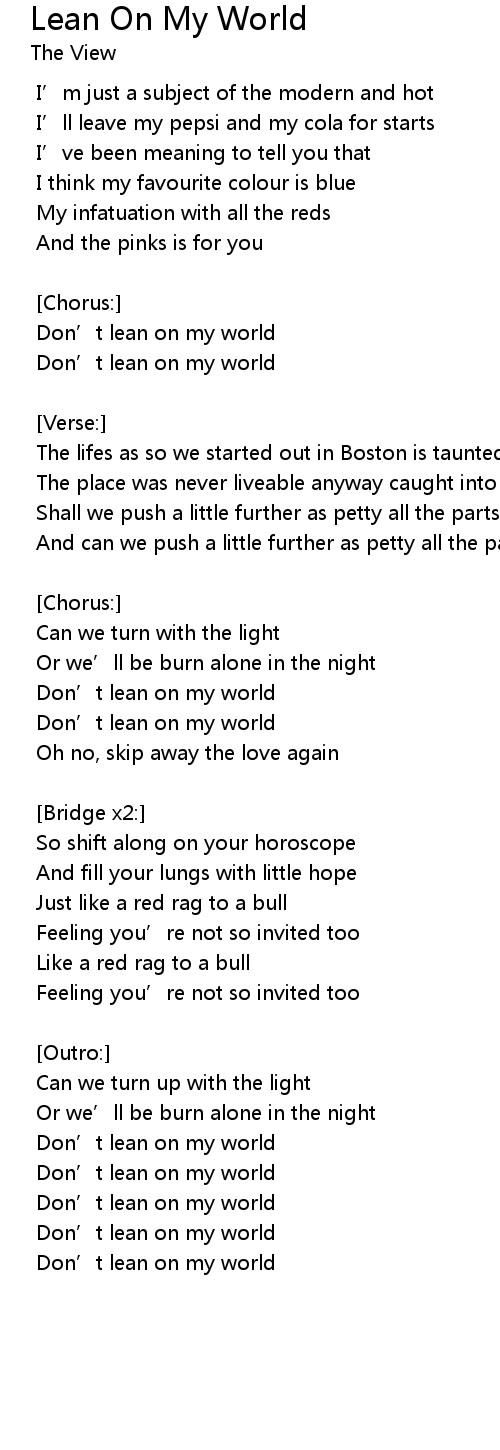 | Don' t lean on my world | |