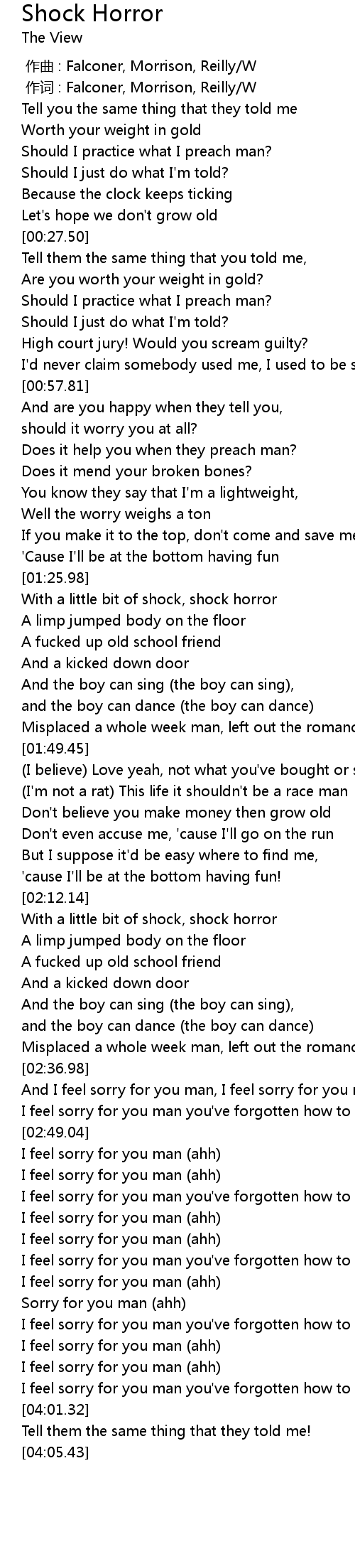 | [02:43.94] | I feel sorry for you man you've forgotten how to clap your hands |
