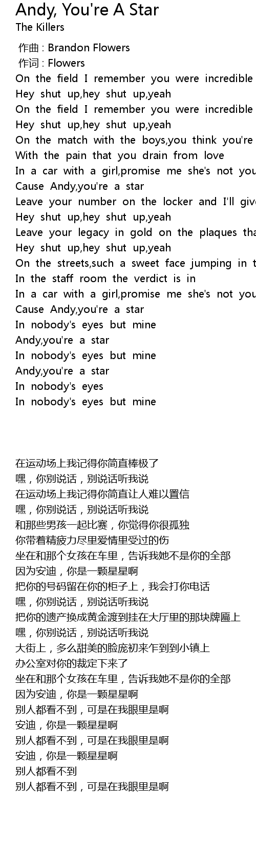 | [02:02.43] | Cause Andy,you're a star |