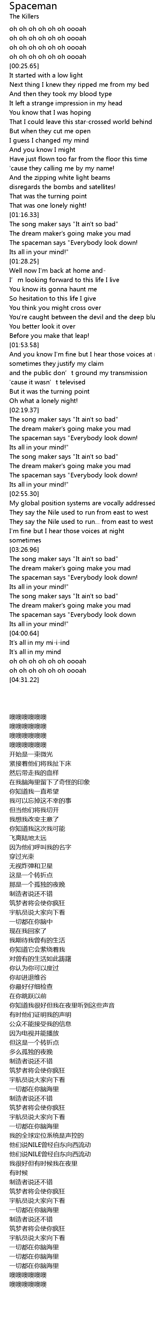 | [03:35.34] | The spaceman says " Everybody look down! |