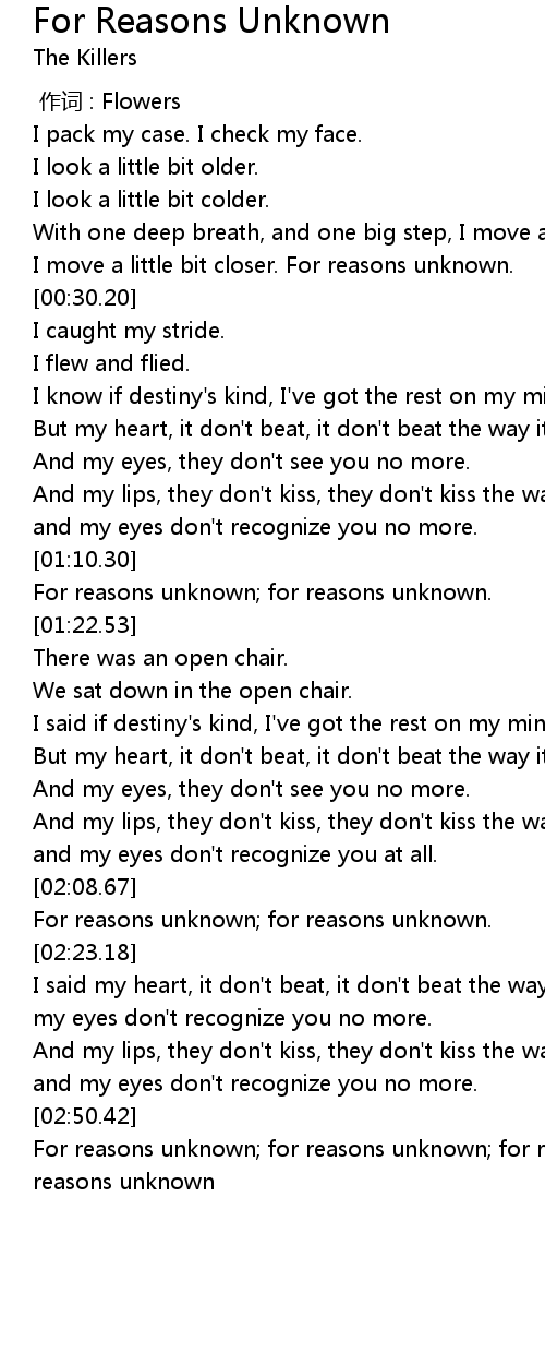 | [02:51.25] | For reasons unknown; for reasons unknown; for reasons unknown; for reasons unknown |