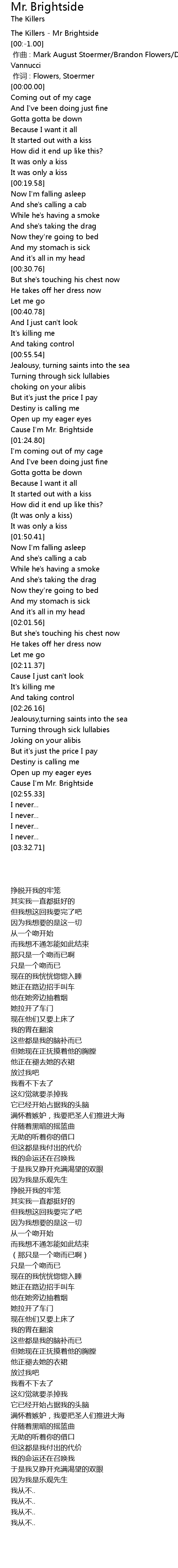| [02:52.42] | Cause I' m Mr. Brightside |