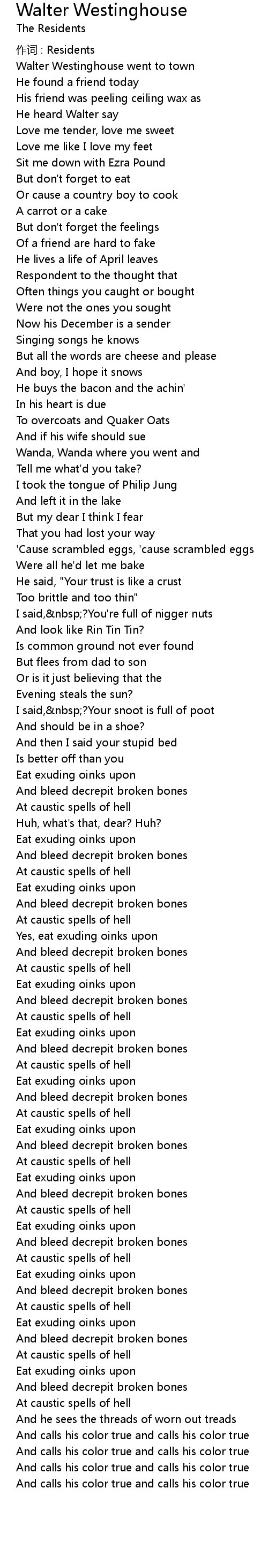 | 作词 : Residents | |