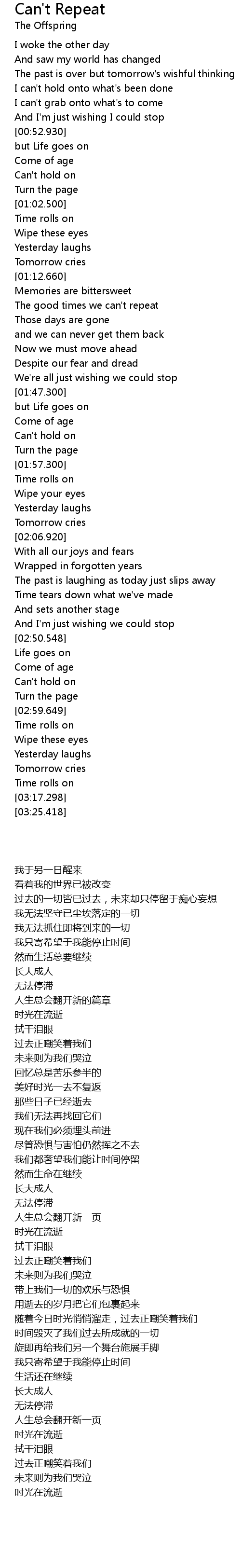 | [01:33.300] | The good times we can' t repeat |
