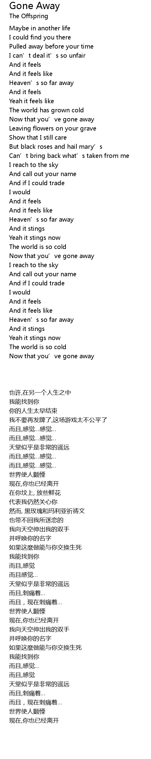 | [03:33.650] | Heaven' s so far away |