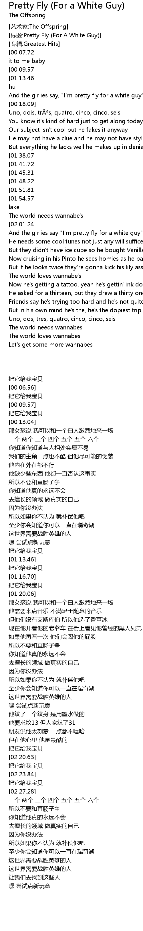 | [01:21.48] | And the girlies say "I'm pretty fly for a white guy" |