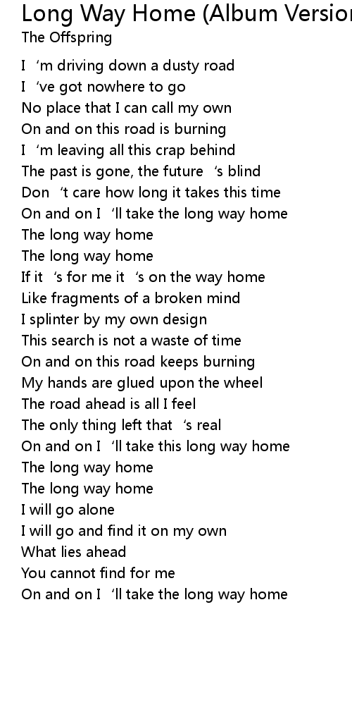 | On and on I' ll take the long way home |