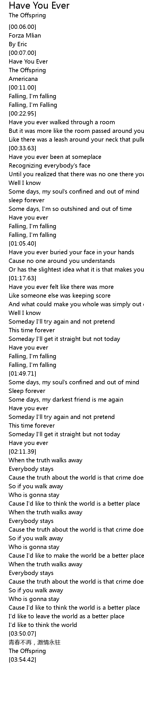 | [01:59.23] | Have you ever |