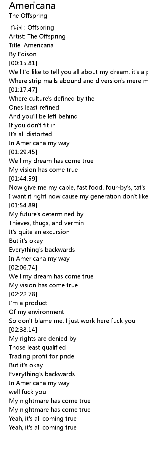 | [02:29.77] | So don't blame me, I just work here fuck you |