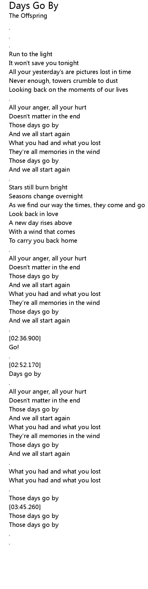 | [03:00.510] | Days go by |
