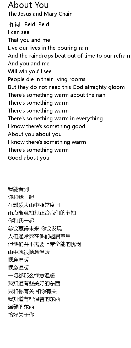 | [02:09.910] | About you about you |