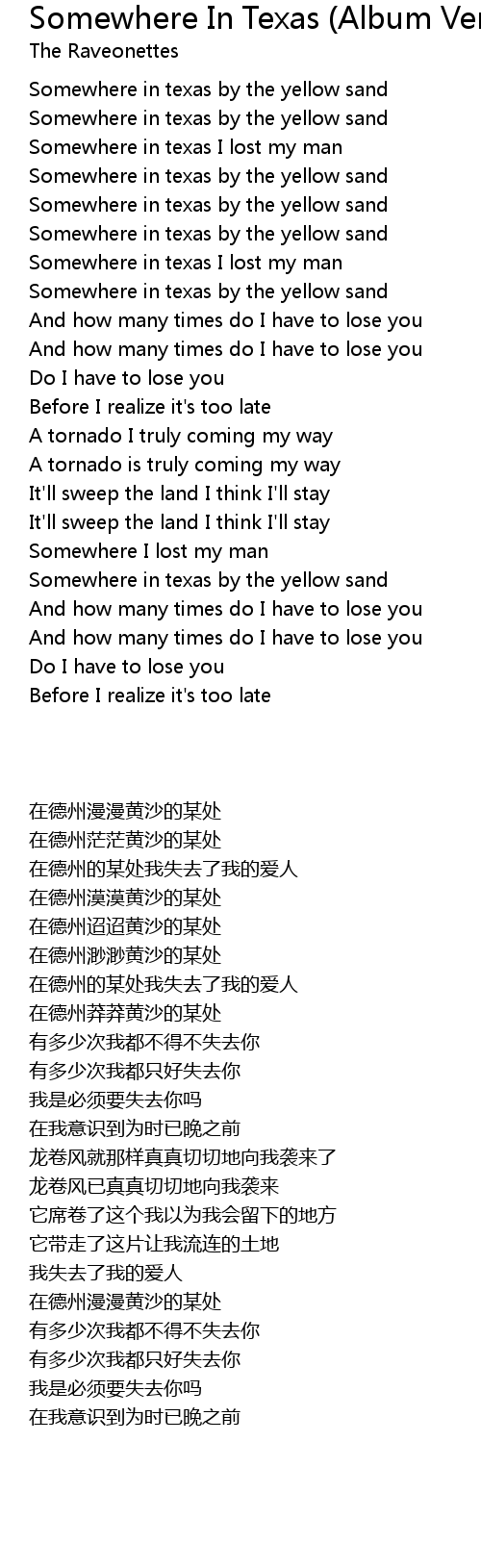 Somewhere in texas by the yellow sand |