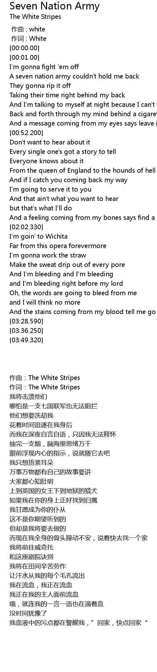 | [00:19.220] | A seven nation army couldn' t hold me back |