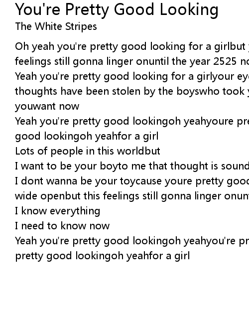 Yeah you're pretty good lookingoh yeahyoure pretty good lookingyes youre pretty good lookingoh yeahfor a girl |