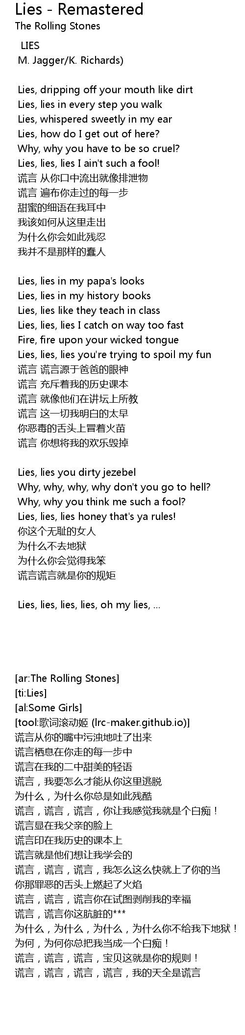 | Lies, lies, lies you' re trying to spoil my fun | |