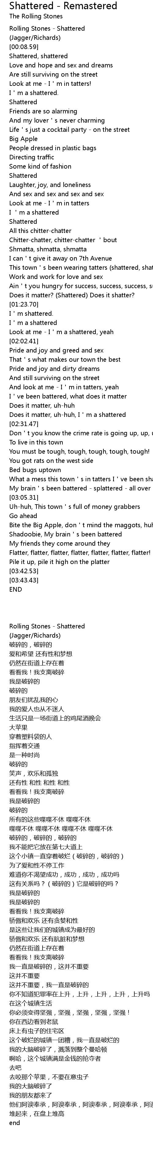 | [00:00.00] | Rolling Stones - Shattered |