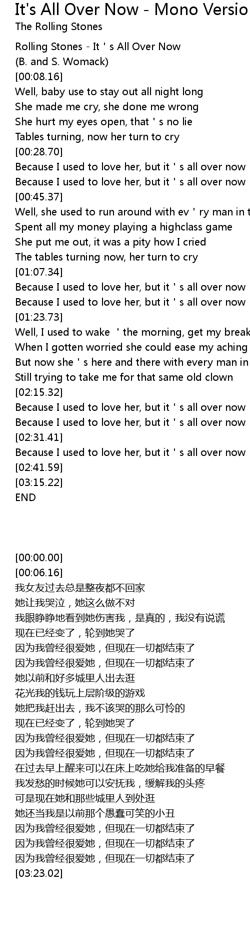 | [00:00.00] | Rolling Stones - It's All Over Now |