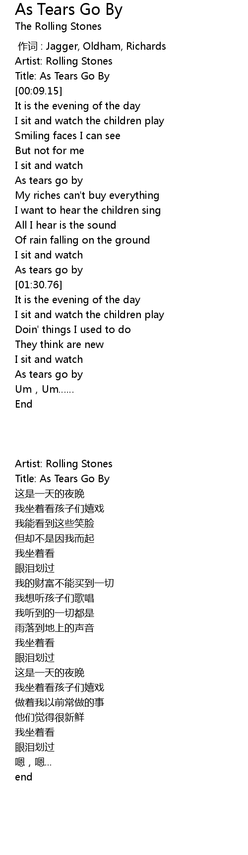 | [00:00.00] | 作词 : Jagger, Oldham, Richards |