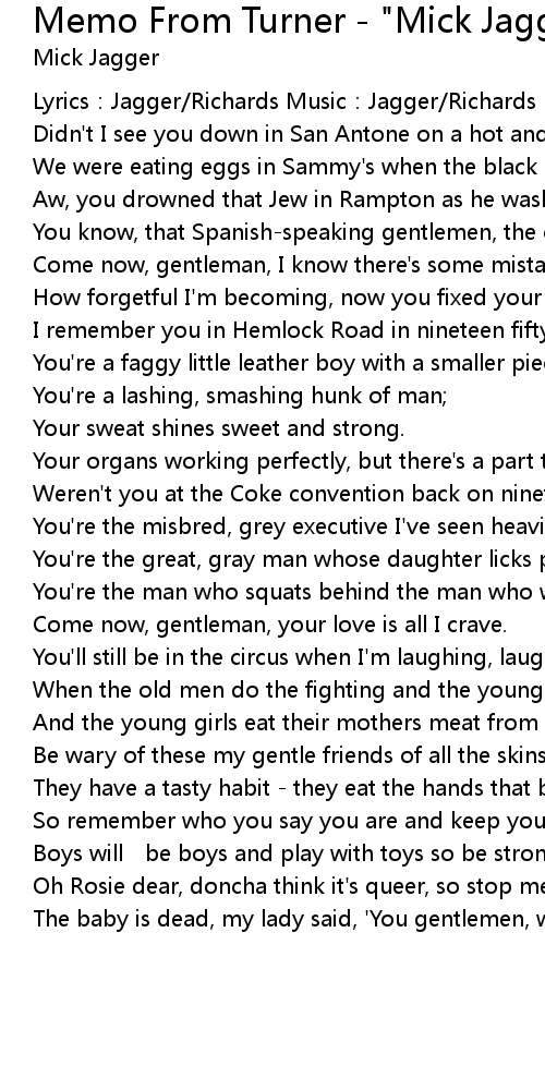| Song | Memo From Turner - "Mick Jagger" Version |