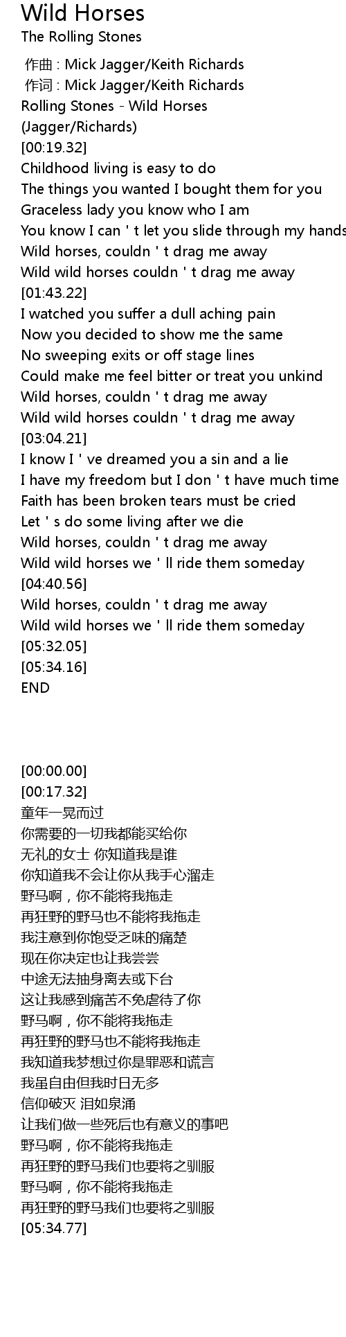 | [00:00.00] | Rolling Stones - Wild Horses |