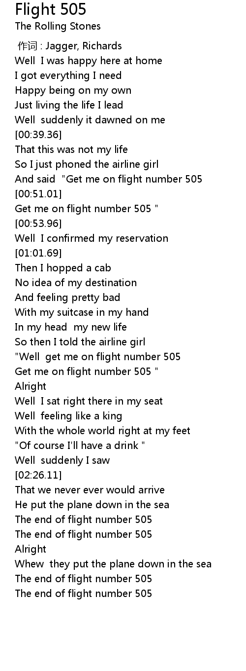 | [00:48.00] | And said " Get me on flight number 505 |